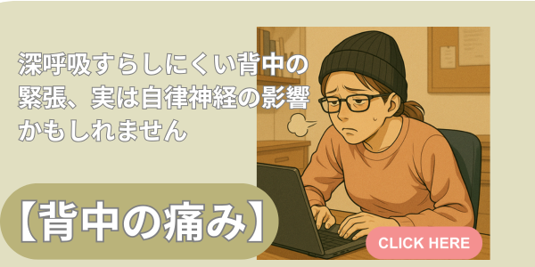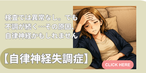 自律神経の不調・パニック発作・めまい・起立性調節障害・慢性頭痛・肩こり・腰痛・背中の張り・不眠・倦怠感・胃腸の不調など、原因のはっきりしない不調の改善を専門的にサポートする整体院です。