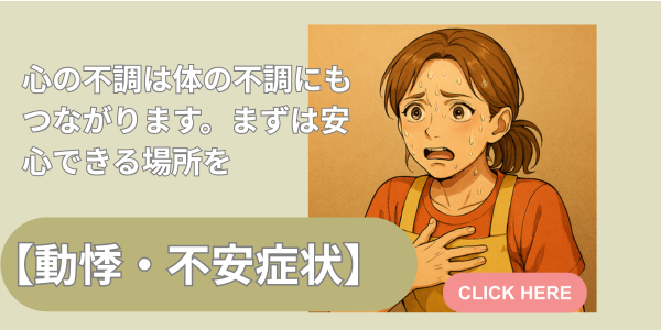 A.約10年前にパニック発作を発症し、動悸やめまい、さわさわする感覚、胸のザワザワ感などにずっと悩まされていました。特にここ3か月ほどは喉の詰まり感が強く、「このままではまた発作がひどくなるのでは」と不安で仕方ありませんでした。病院では薬を出されるだけで根本的な改善は見られず、ネットで調べているうちに“ヒステリー球”という言葉を見つけ、おのでら整体院の口コミに希望を感じて予約を決めました。